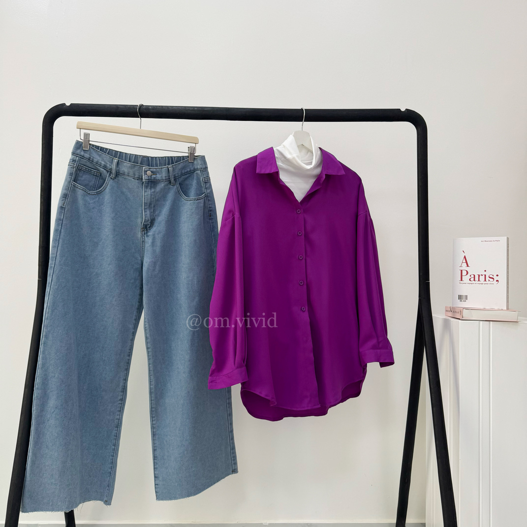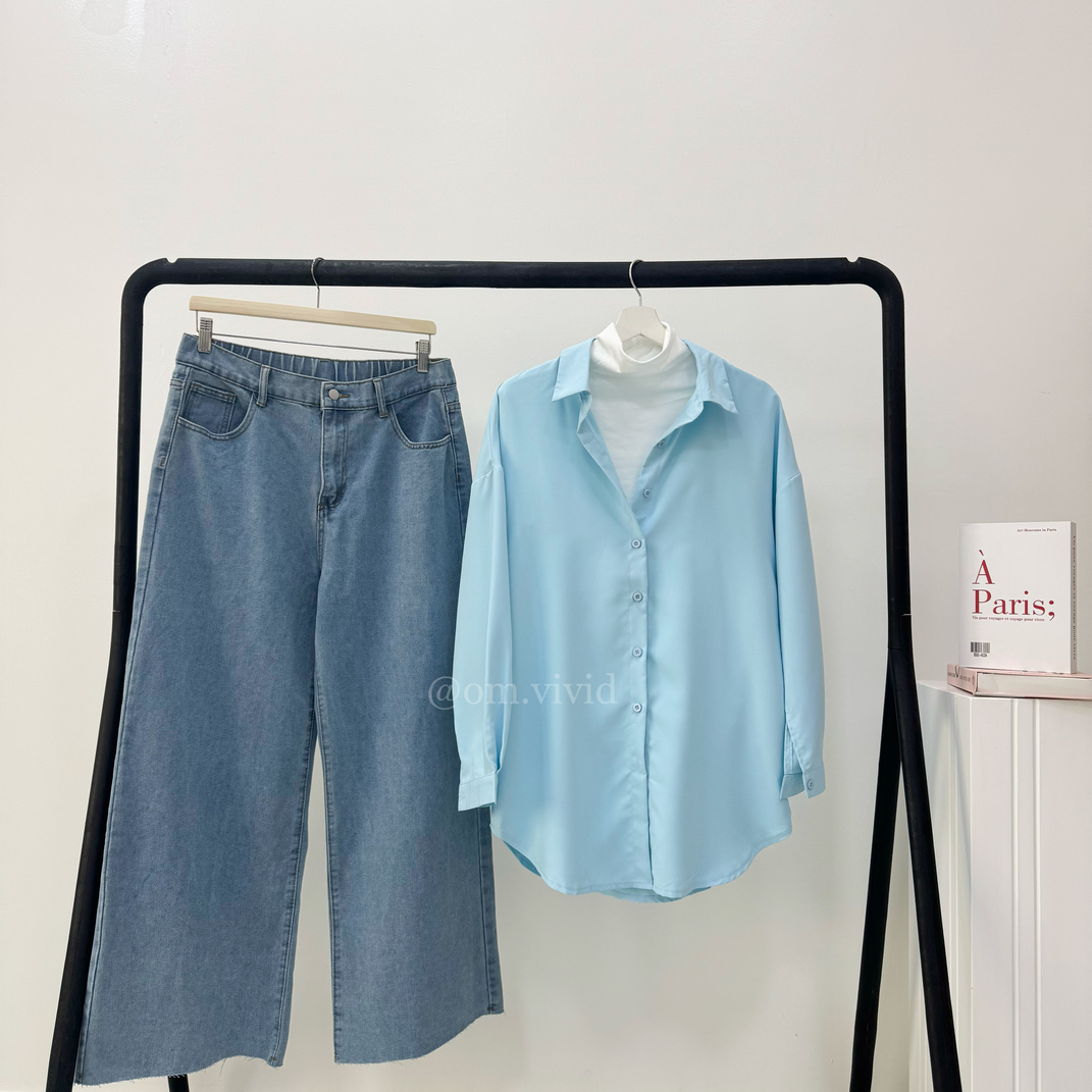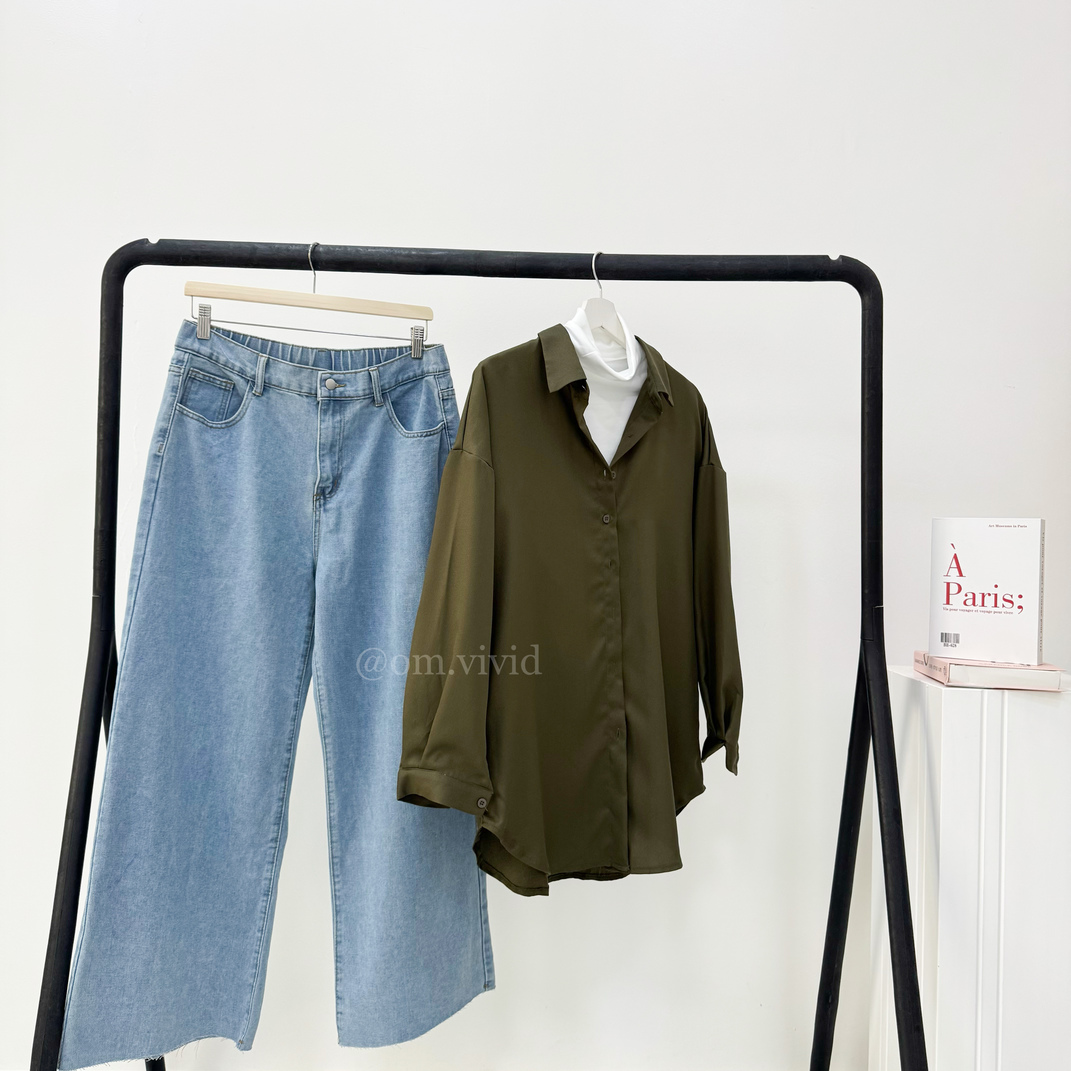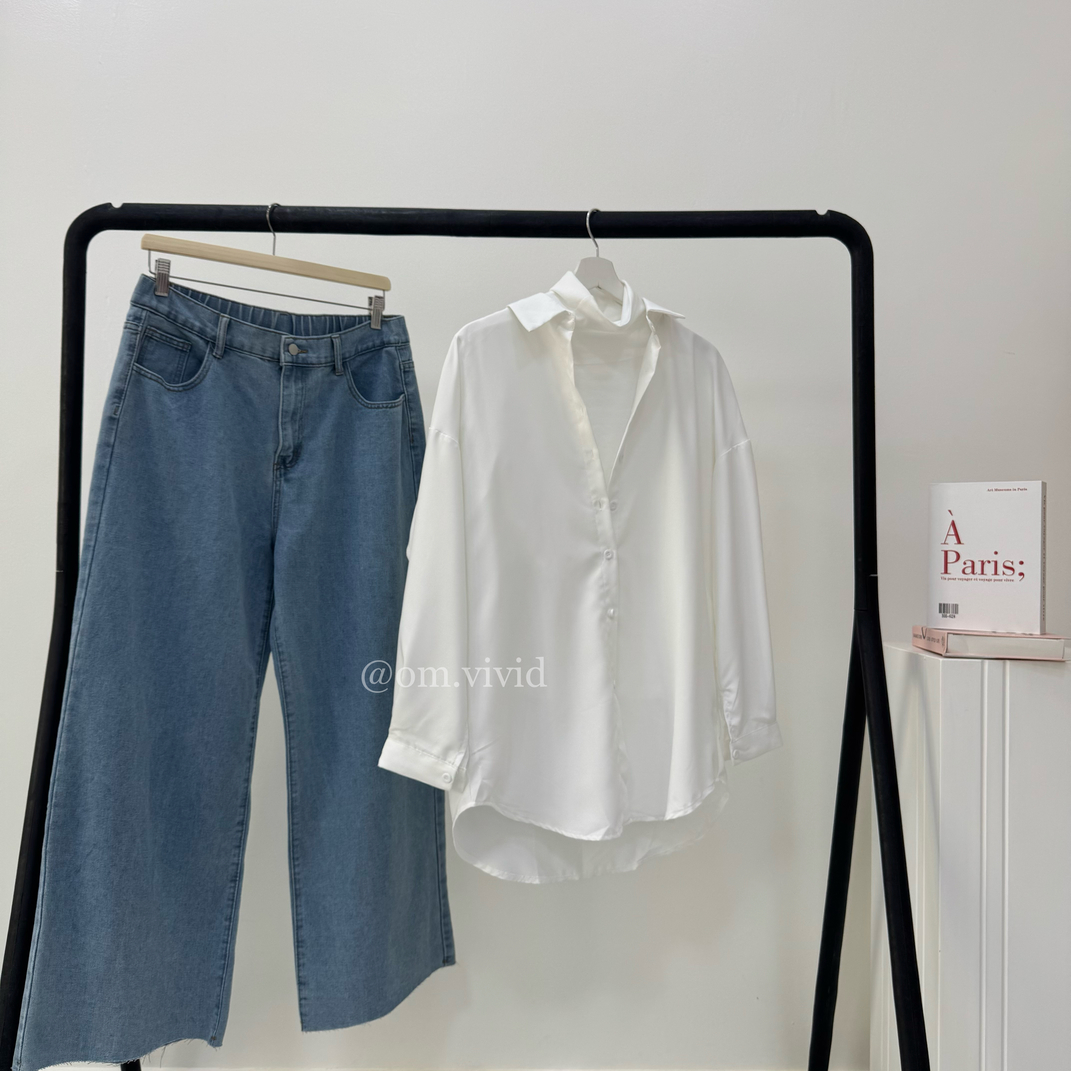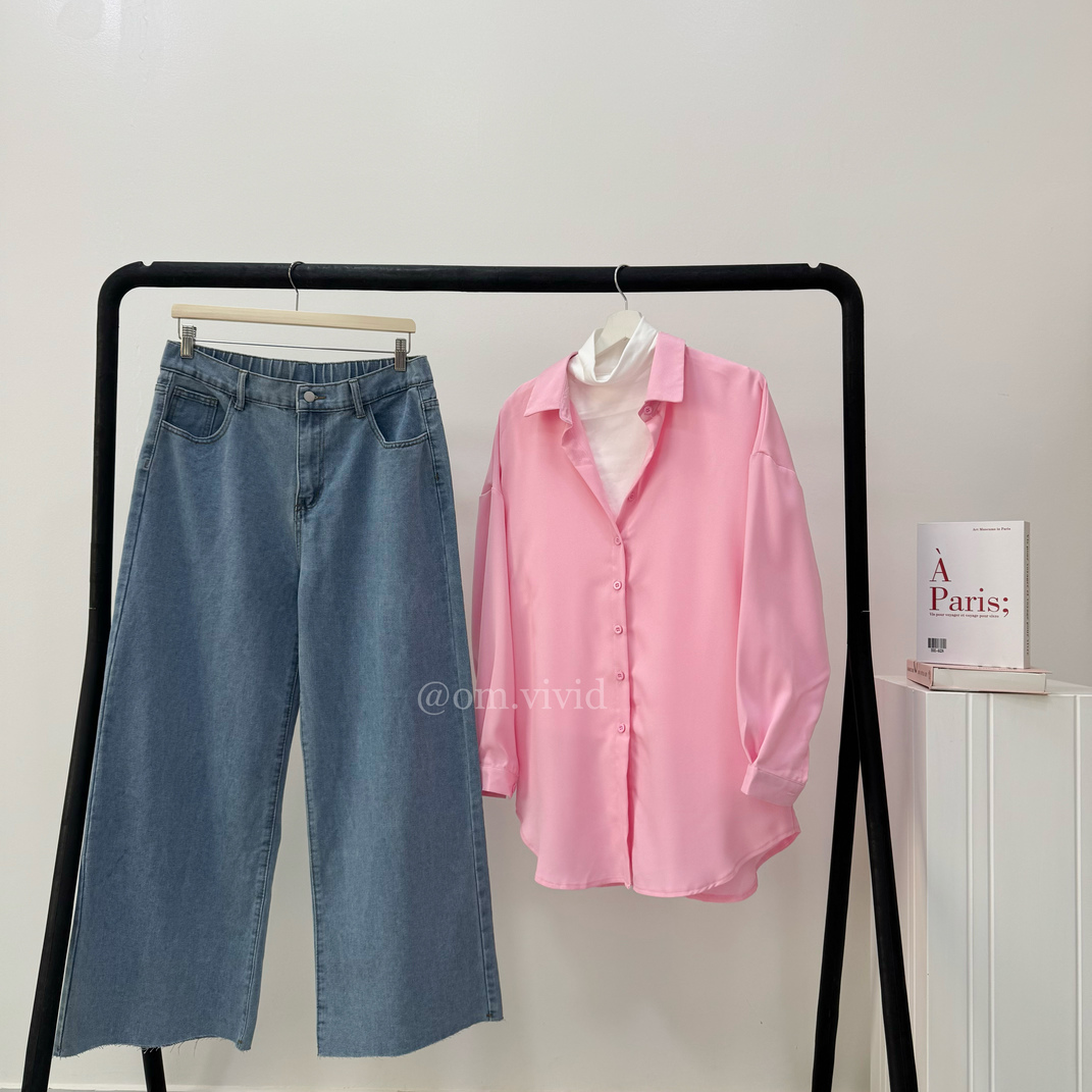 البنطلون: جينز واسع – يحتوي على ممر حزام – مطاط من الخلف