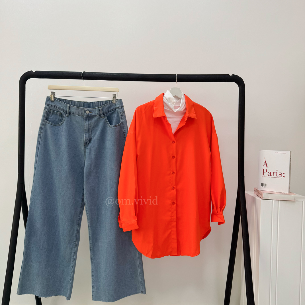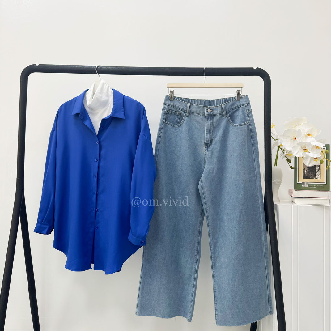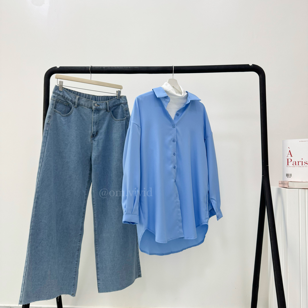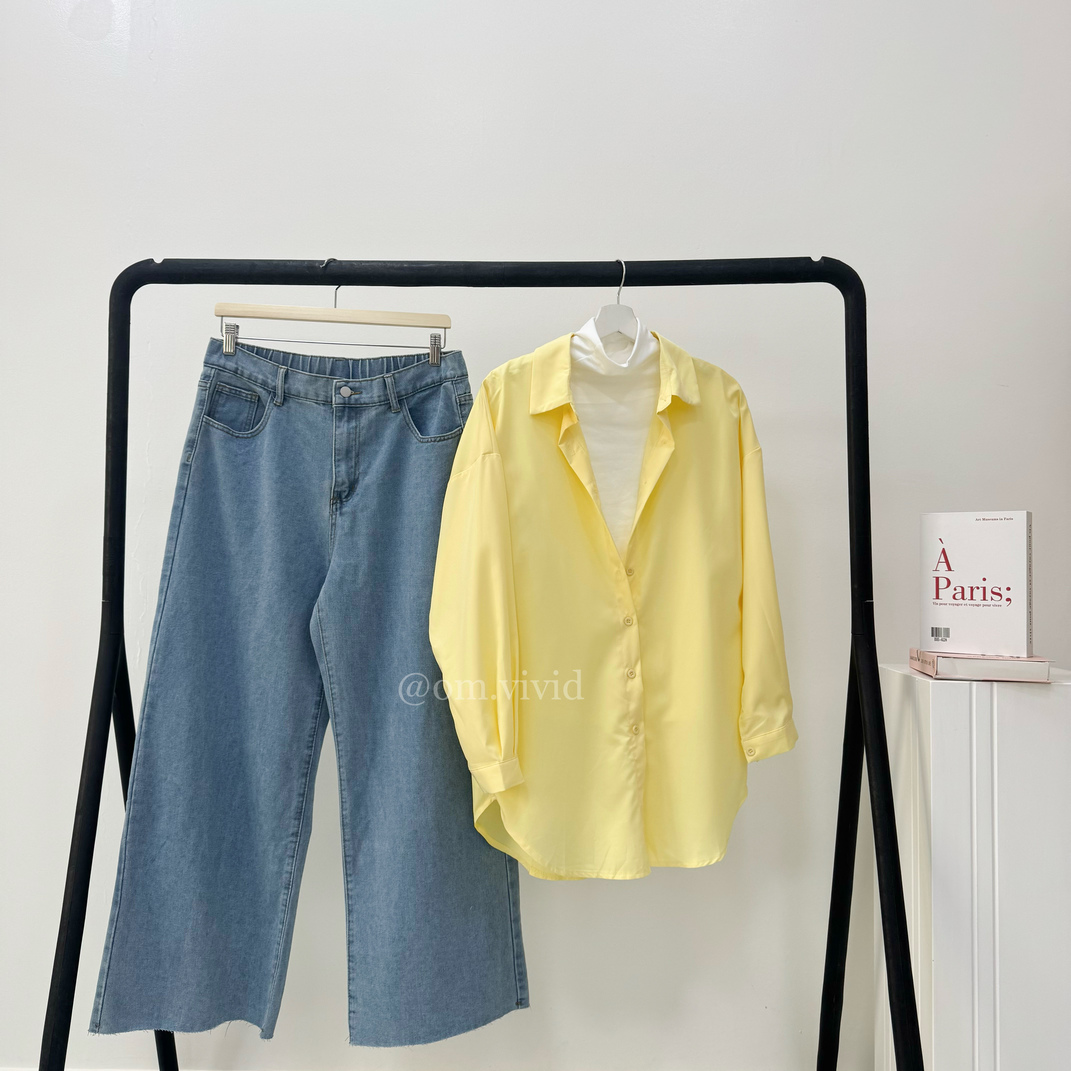 البنطلون: جينز واسع – يحتوي على ممر حزام – مطاط من الخلف