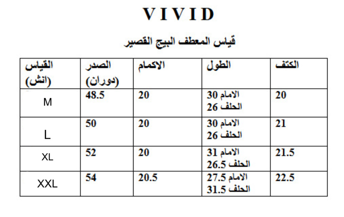 | قياس المعطف | S, M, L, XL |