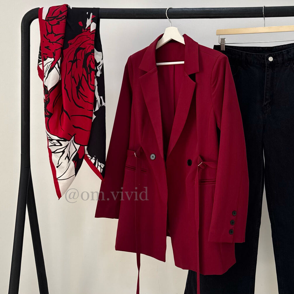 + Free Shippingبليزر ربيعي مبطن مخصر بأزرار اماميه و حزام متوسط الطول و يغطي منظقة الوركين