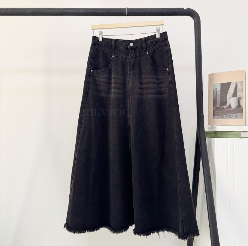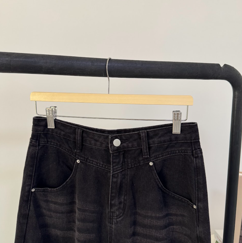 تنوره جينز واسعه و ثقيله بزر امامي و سحاب و تحتوي على ممر للحزام