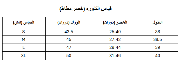 | قياس التنوره | S, M, L, XL |