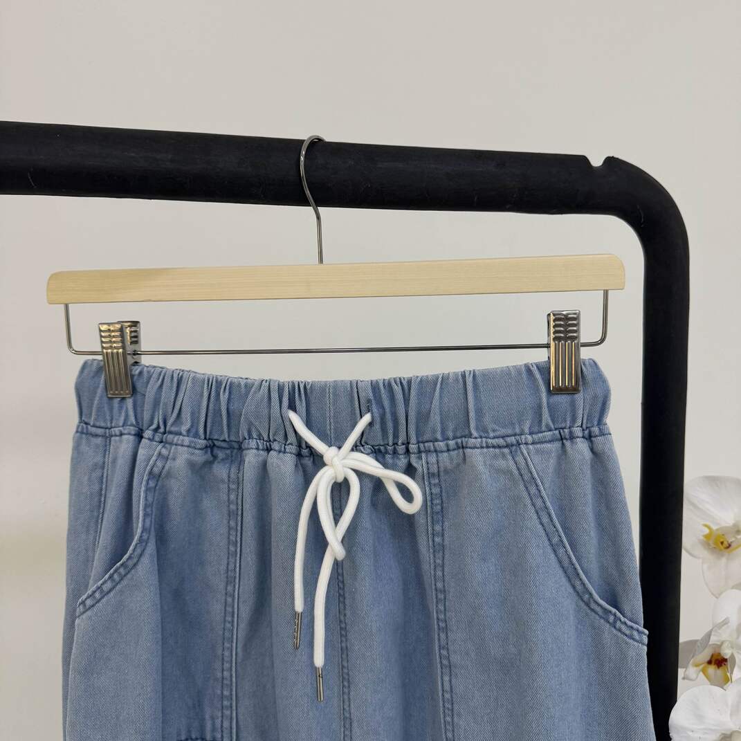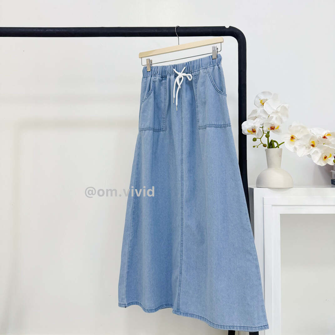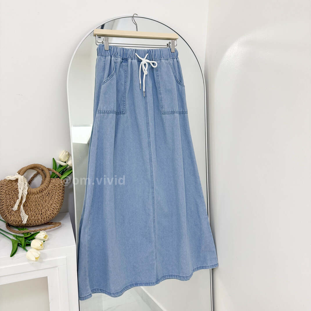 + Free Shippingتنوره كلوش و بخصر مطاطي مع جيوب امامي