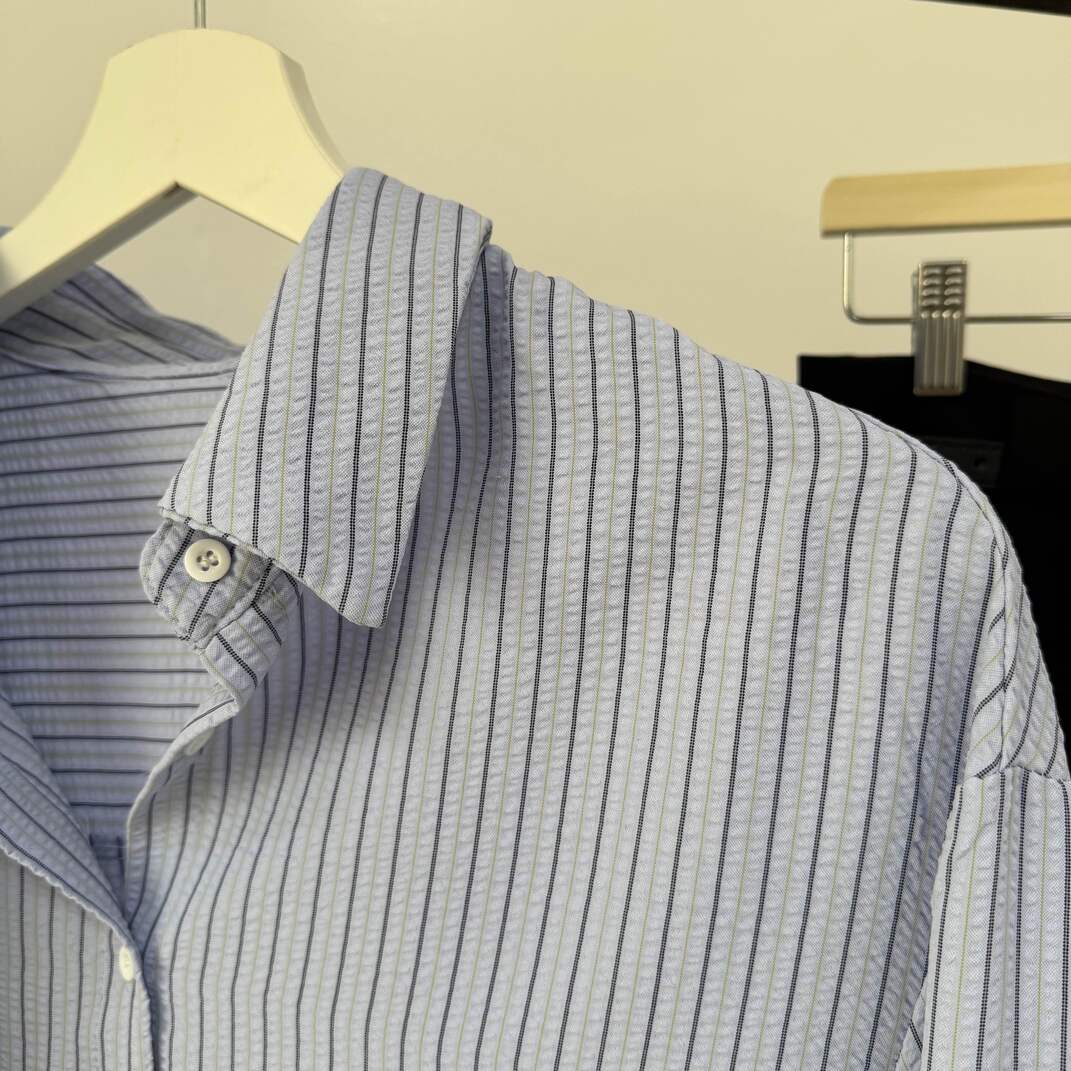 القميص: صيفي مخطط واسع يغطي منطقة الوركين