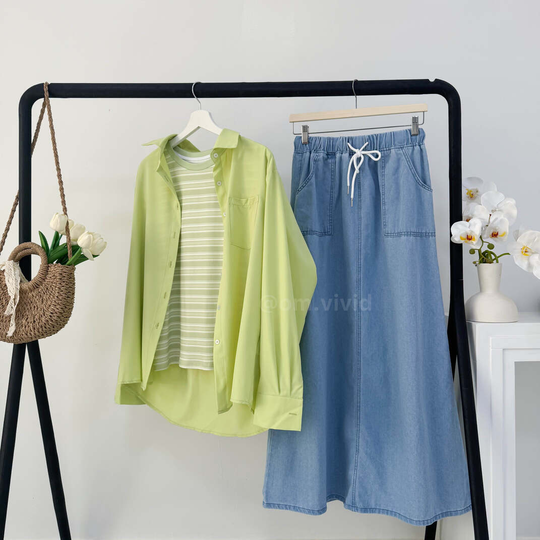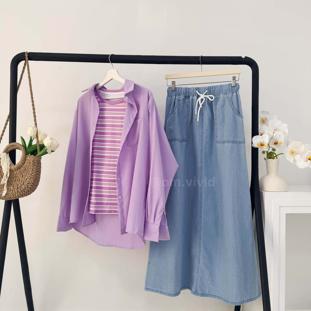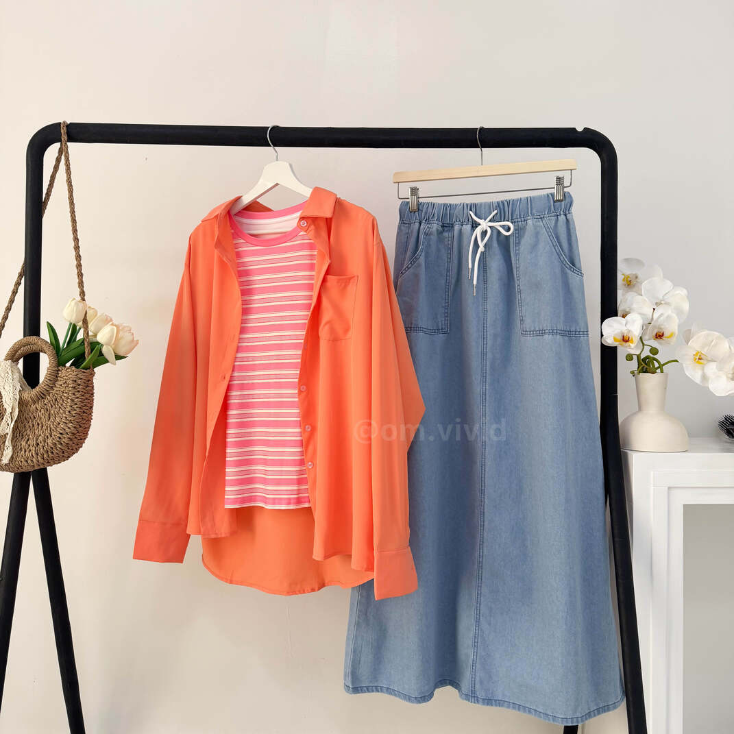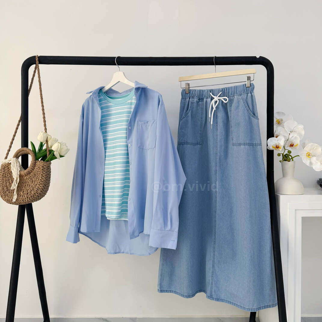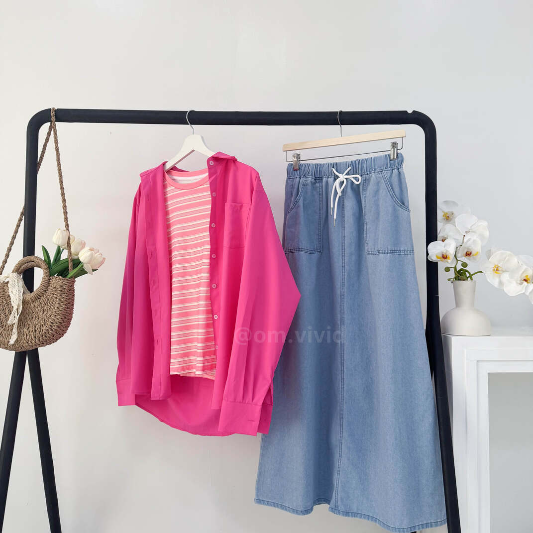 + Free Shippingطقم صيفي ٣ قطع ( قميص + كنزه + تنوره )