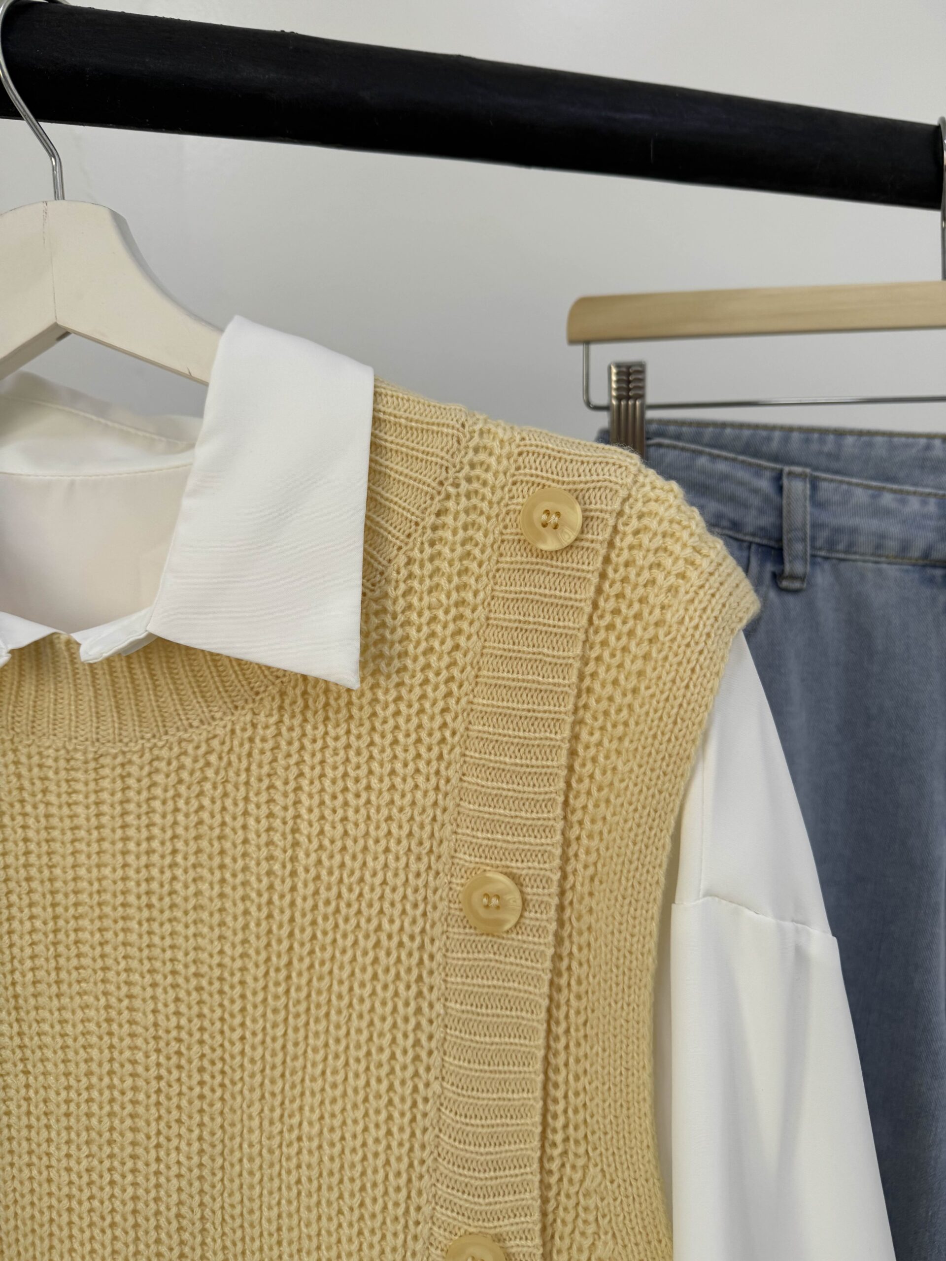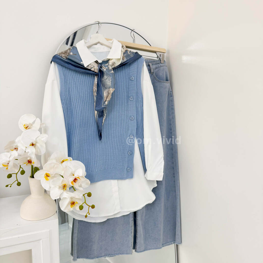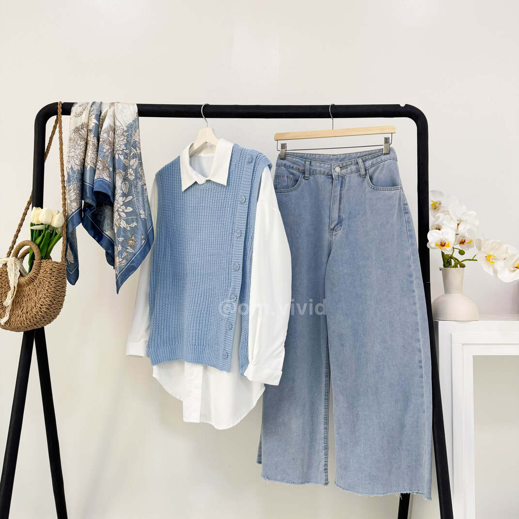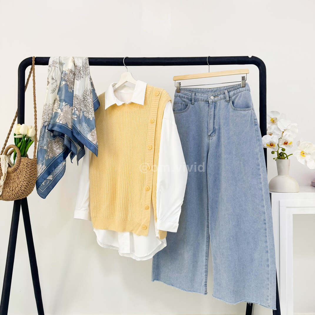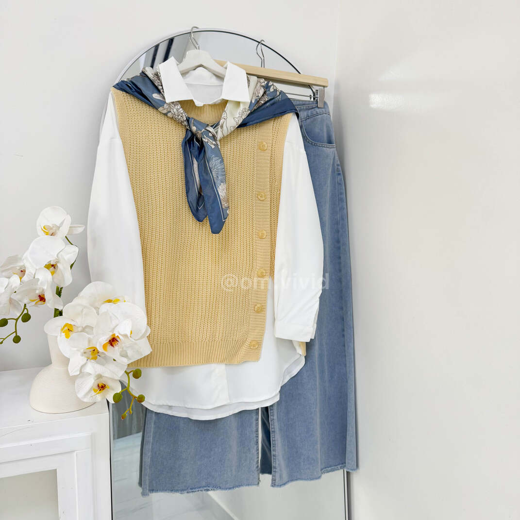 | محتويات الطقم | قميص ابيض + كنزه + بنطلون جينز + وشاح, قميص ابيض + كنزه + بنطلون جينز |