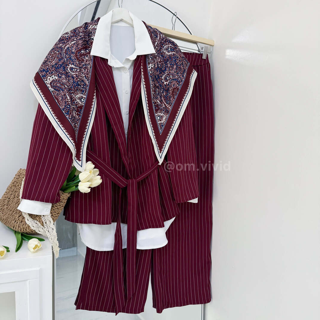 | محتويات الطقم | قميص و بنطلون ماروني + قميص داخلي + وشاح, قميص و بنطلون ماروني + قميص داخلي |