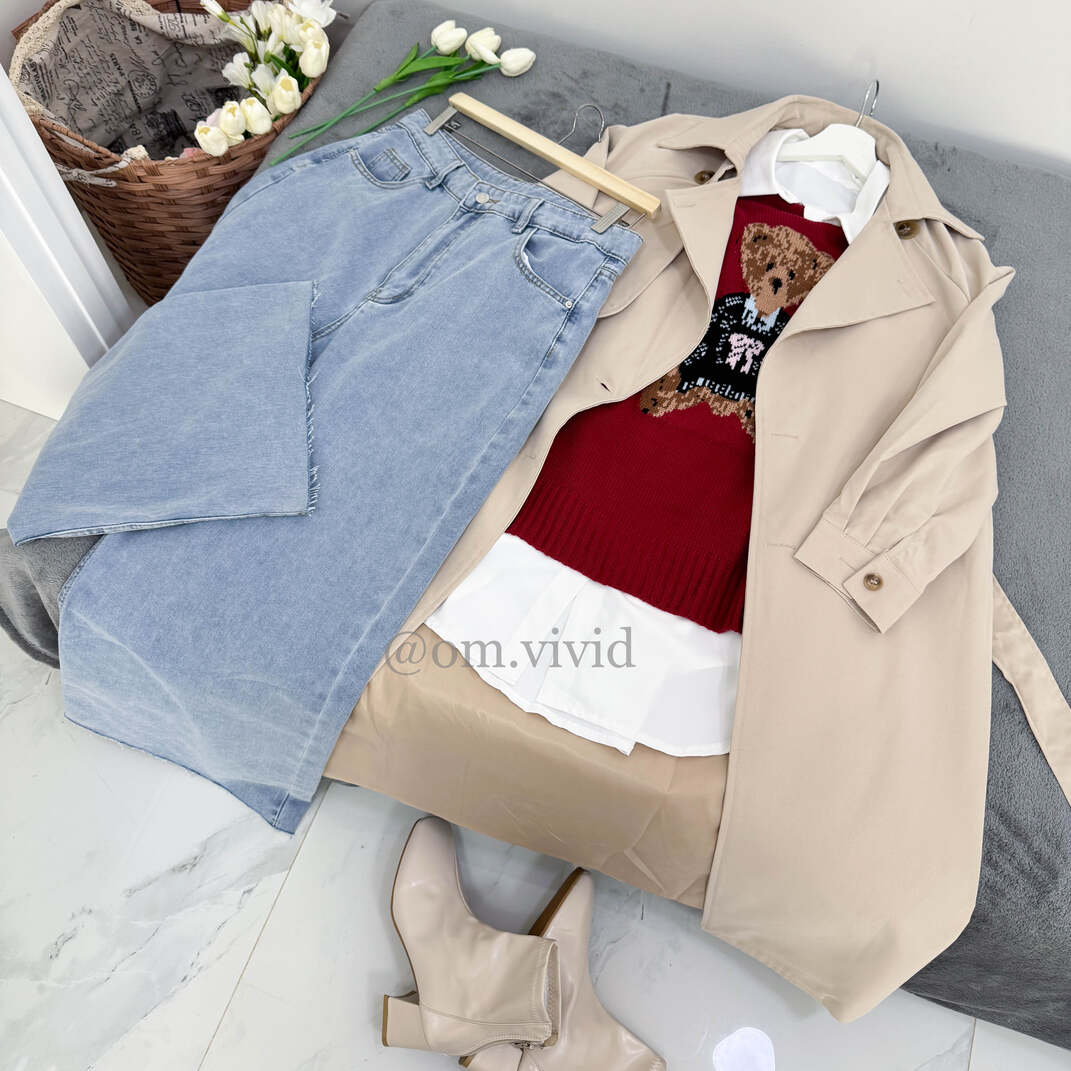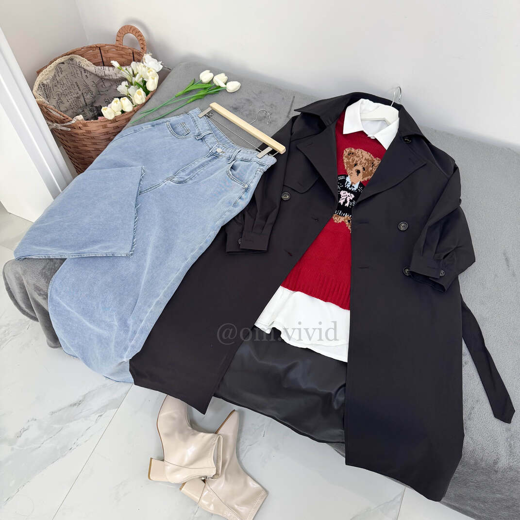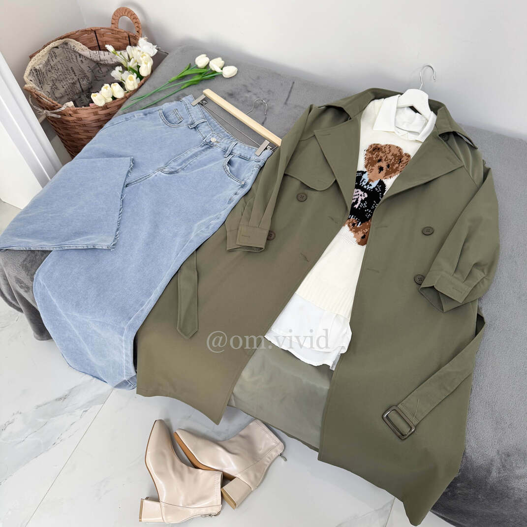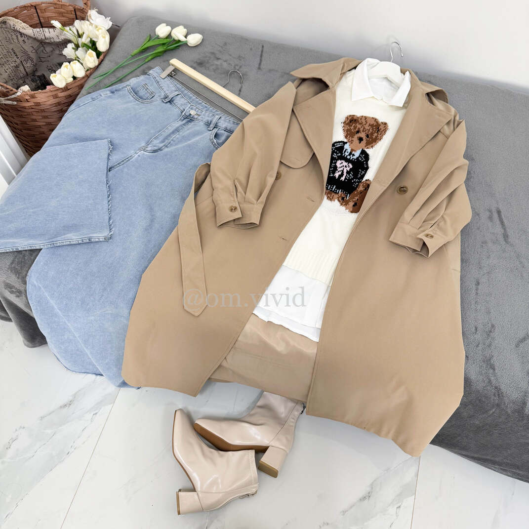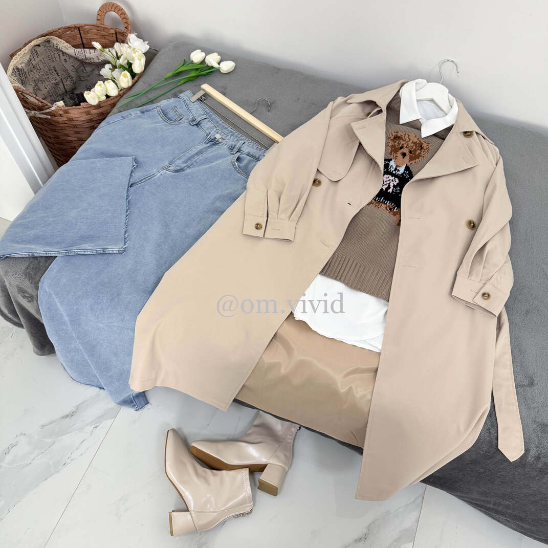 الترنشكوت: ربيعي/خريفي طويل مبطن بأزرار اماميه مزدوجه و حزام
