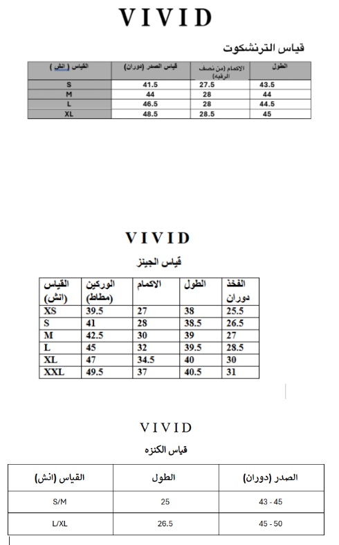 | قياس القميص | XS, S, M, L, XL |