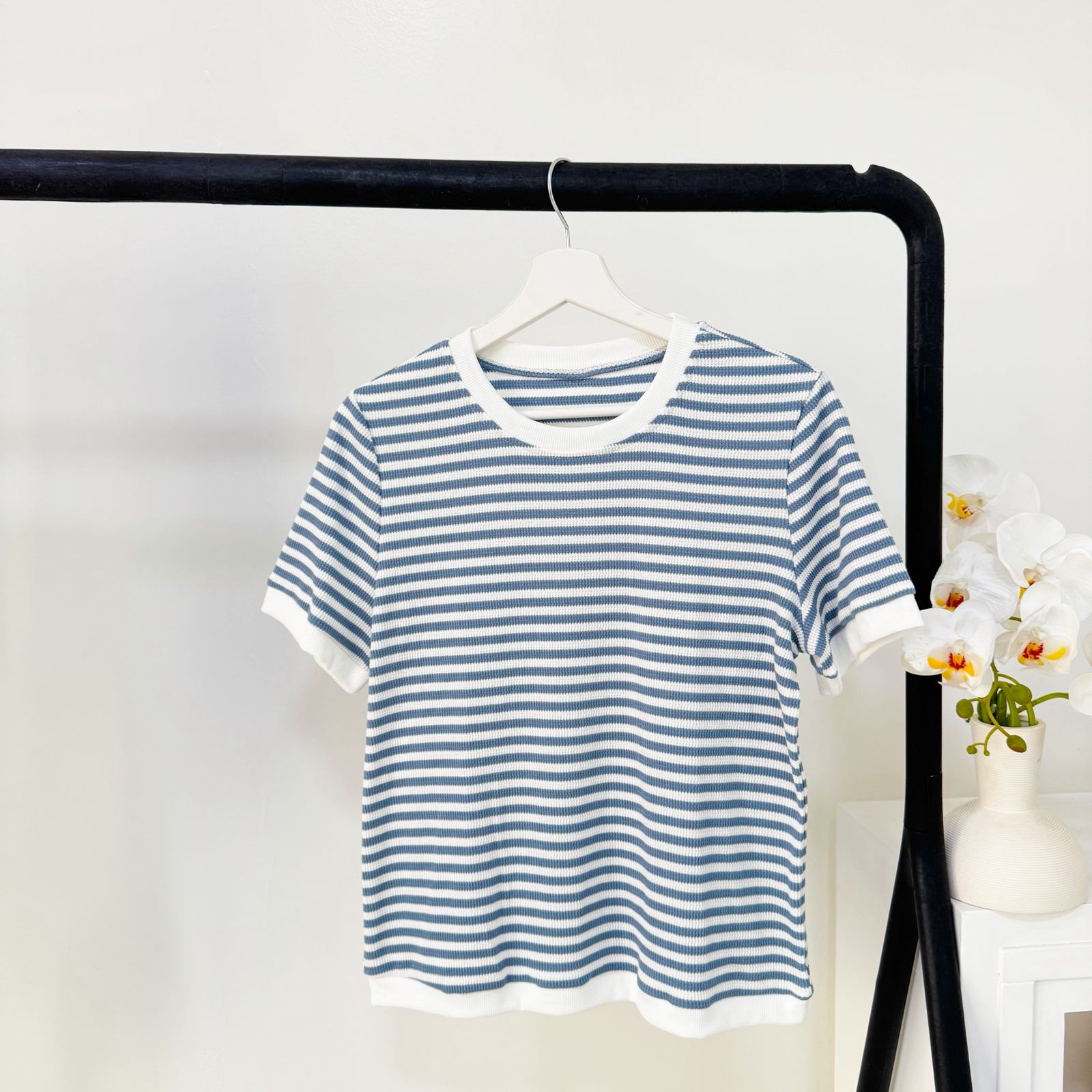 + Free Shippingكنزه مخطط ازرق بأكمام قصيره و قابله للتمدد
