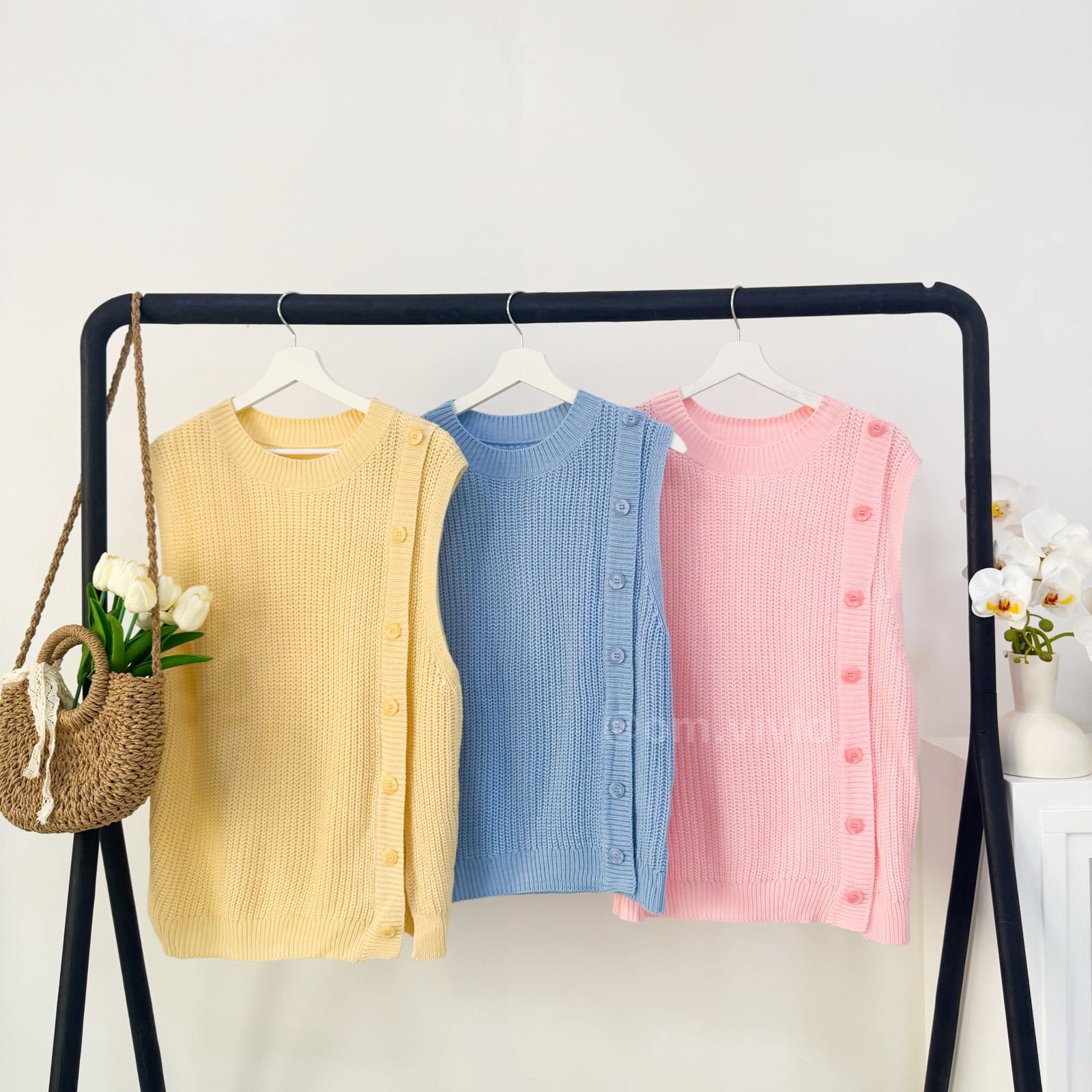 + Free Shippingكنزه صوف بدون اكمام قابل للتمدد مع ازرار جانبيه
