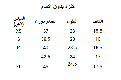 | قياس الكنزه | XS, S, M, L, XL |